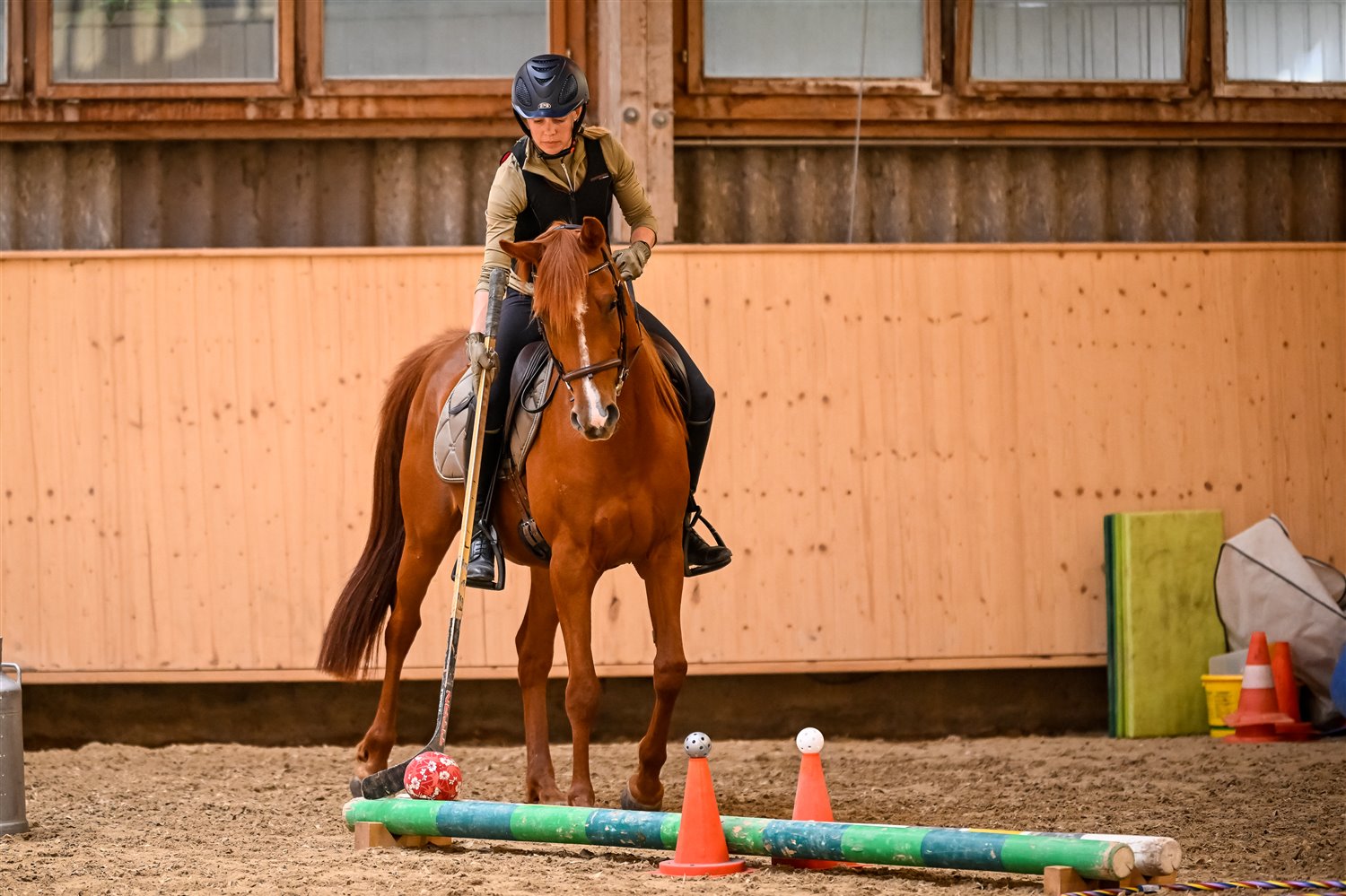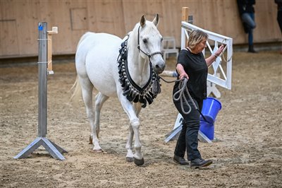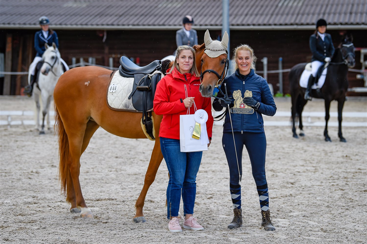 Die grosse Teilnehmerzahl stellte das OK aber auch vor eine neue Herausforderung, denn die 70 Starts mussten alle an einem Tag zu einigermassen christlichen Zeiten abgehalten werden. So entschied sich das OK Team, über den Mittag zwei Wettbewerbe gleichzeitig laufen zu lassen, was administrativ und organisatorisch eine neue Situation darstellte. Morgens um 7.00 Uhr begann die Challenge in der Reithalle Barmatt mit der Bodenarbeitsklasse der Kategorie Novice und anschliessend der Kategorie Advanced. Um 12.00 Uhr startete dann auf dem Aussenplatz die erste Dressurprüfung das GA01/40 und um 12.15 das Gymkhana in der Halle. Die Challenge endete mit der Dressurprüfung M21/40 um 17.30 Uhr. Nach dem Aufräumen und Putzen durfte ein geschafftes OK-Team und ihre treuen Helfer auf einen erfolgreichen, spannenden und strengen Tag zurückblicken und war einfach glücklich die neue Aufgabe gut gemeistert zu haben. Auch das Wetter spielte mehrheitlich gut mit. Mit Ausnahme von zeitweilig starken Böen und nur ein paar vereinzelten Tropfen, blieb es trocken und teilweise sonnig, wenn auch eher frisch.